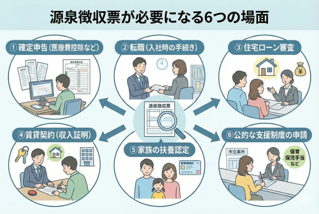 ここでは、源泉徴収票が必要になる代表的な6つの場面を紹介します。