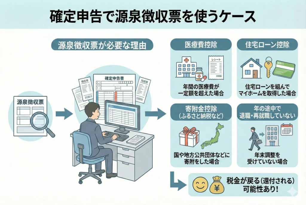 ここでは、確定申告で源泉徴収票が必要になる代表的な3つのケースを紹介します。