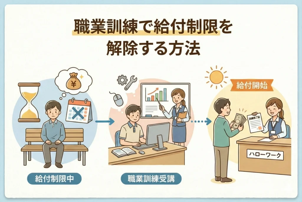 - 給付制限期間が解除され、訓練開始日から失業保険を受給できる