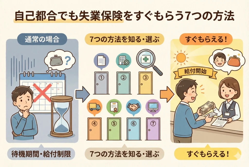 ここでは、自己都合退職でも失業保険をすぐにもらうための7つの方法を詳しく解説します。ご自身の状況に当てはまるものがないか、ぜひ確認してみてください。