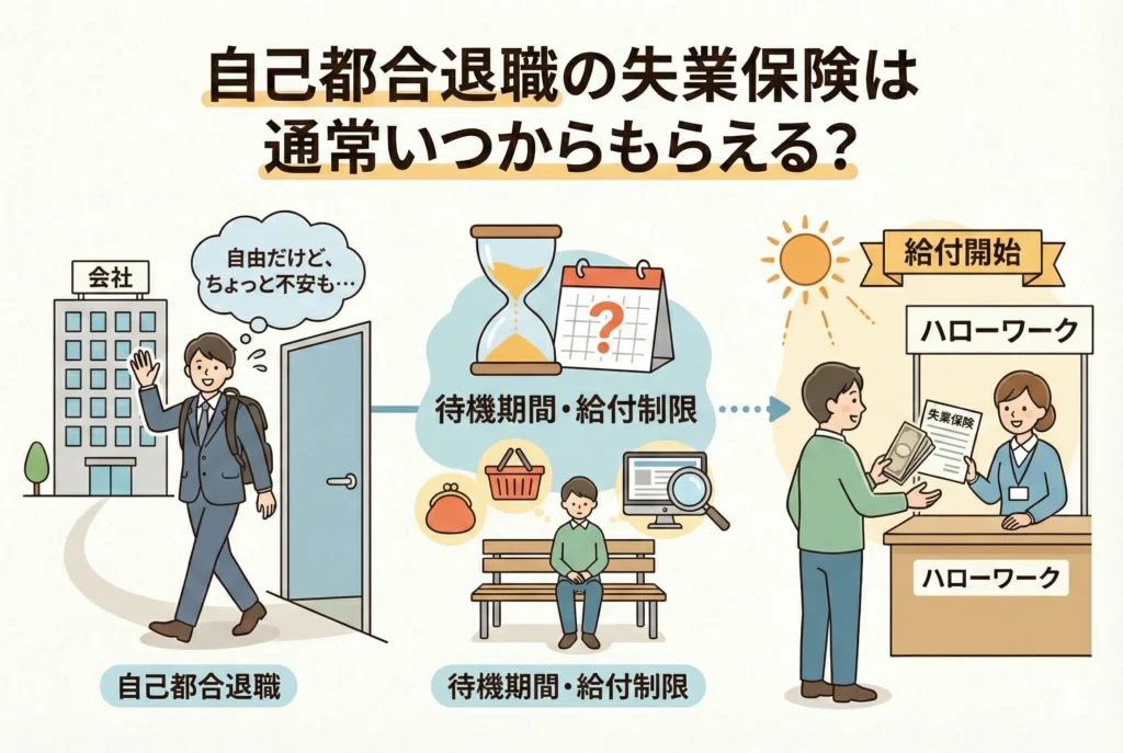 自己都合退職で失業保険を受け取る場合、「すぐにはもらえない」という点を知っておく必要があります。ハローワークで求職申し込みをしてから、実際に失業保険が口座に振り込まれるまでには一定の期間が必要です。