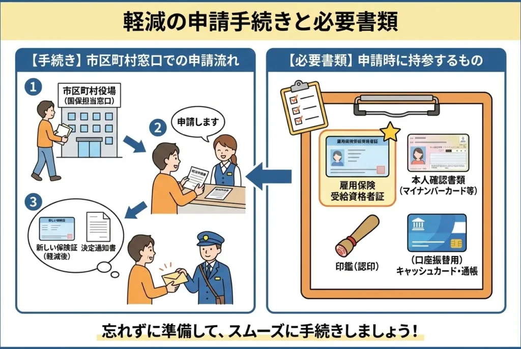軽減制度を利用するには、ハローワークで「雇用保険受給資格者証」または「雇用保険受給資格通知」の交付を受けている必要があります。これらの書類がなければ、市区町村の窓口で軽減申請を行うことができません。