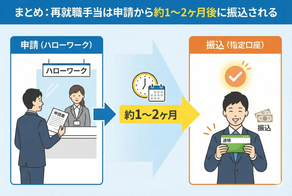 まとめ:再就職手当は申請から約1〜2ヶ月後に振込される