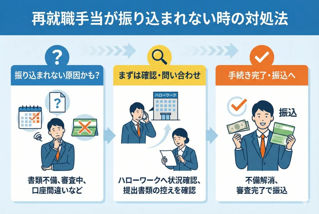 再就職手当を申請したにもかかわらず、なかなか振り込まれないと不安になるものです。「審査に落ちたのではないか」「書類に不備があったのではないか」と心配になる方も多いでしょう。