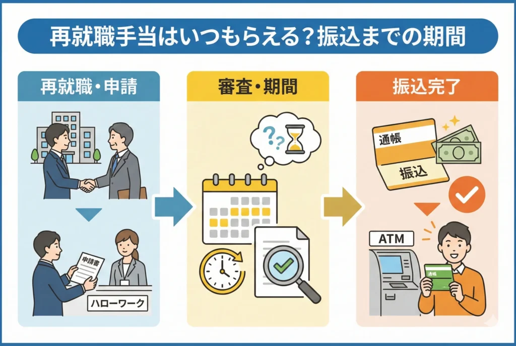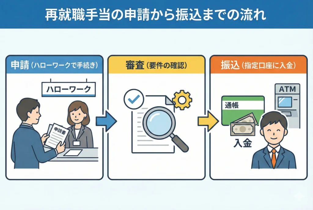 再就職手当は、申請したからといってすぐに受け取れるわけではありません。ハローワークでの審査や在籍確認などの手続きを経て、ようやく振り込まれる仕組みになっています。