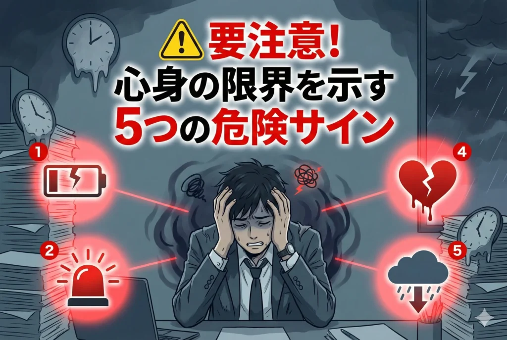 「仕事に行きたくない」という気持ちが、単なる気分の問題ではなく心身の不調として現れているなら、それは危険信号です。体や心が「もう限界だ」とSOSを発しているサインかもしれません。
