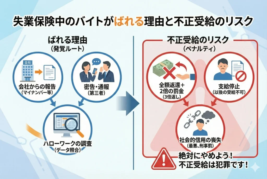 「少しだけだから大丈夫だろう」「手渡しだからばれないだろう」と考えるのは危険です。申告漏れが発覚した場合、受給した失業保険の返還に加え、最大で3倍の金額を請求されるペナルティが科されます。