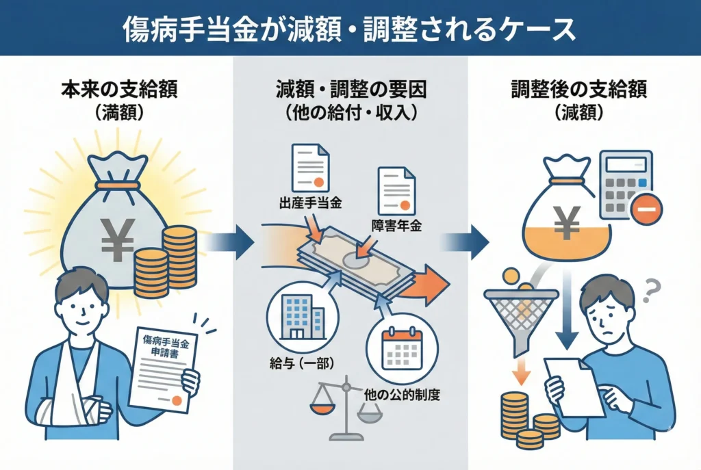 傷病手当金が減額・調整されるケース