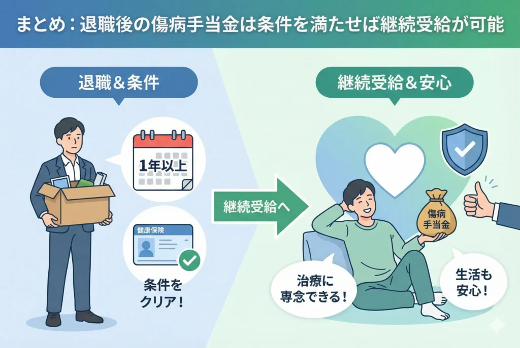 まとめ:退職後の傷病手当金は条件を満たせば継続受給が可能