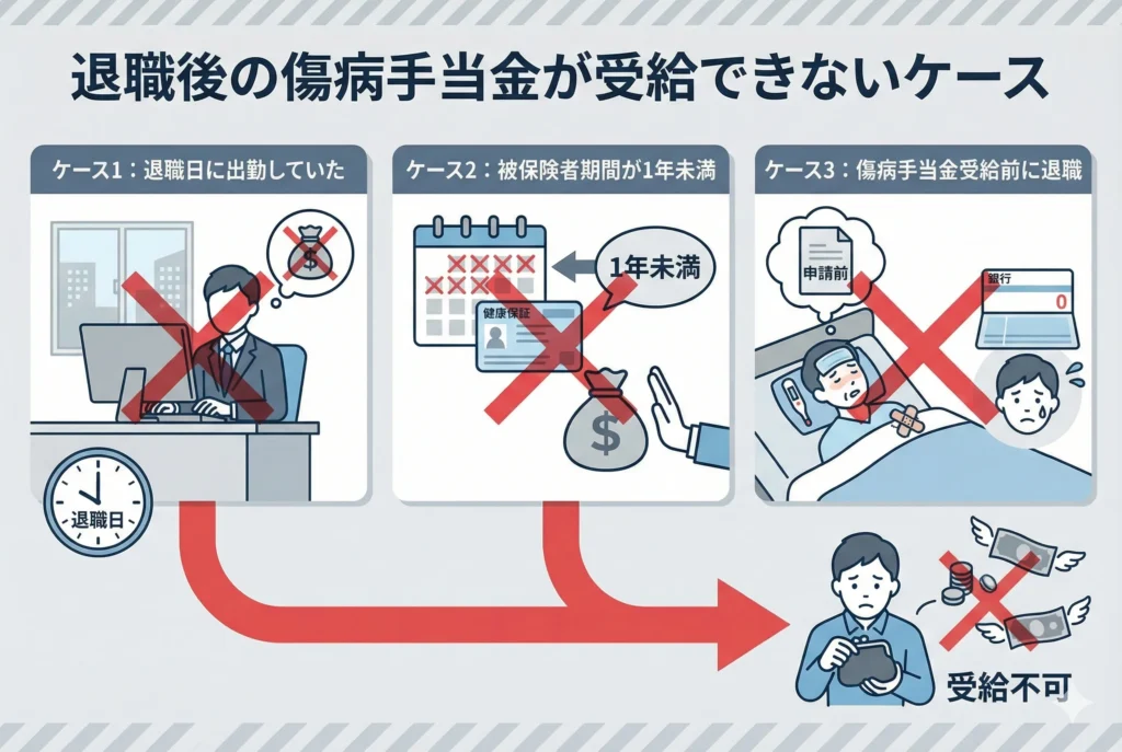 退職後の傷病手当金の継続給付には、いくつかの条件があることを解説してきました。しかし、条件を満たしているつもりでも、実際には受給できないケースが存在します。