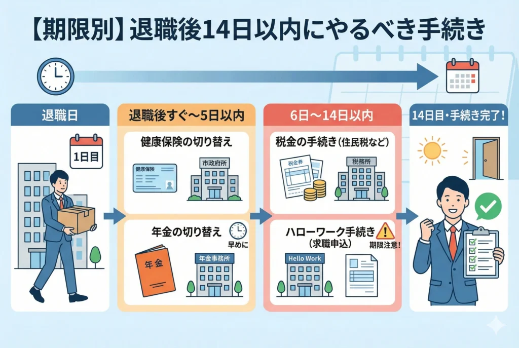 【期限別】退職後14日以内にやるべき手続き