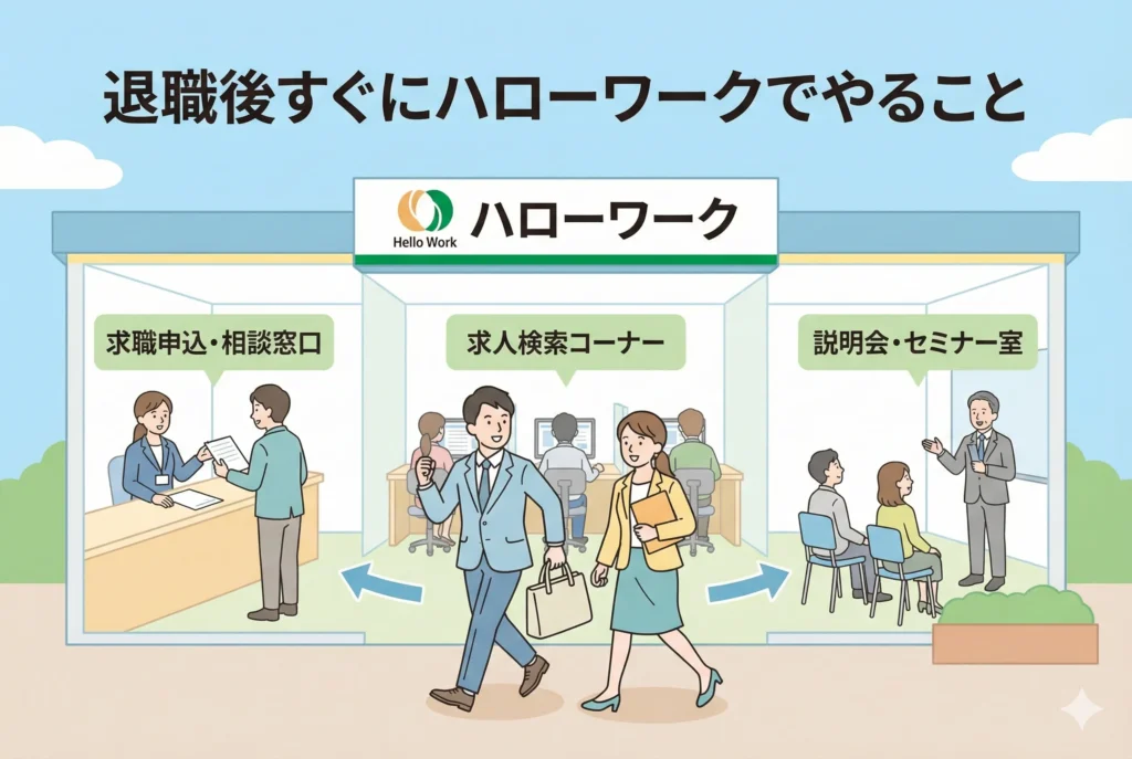 退職後に転職活動を行う場合や、すぐに再就職しない場合は、雇用保険の基本手当(失業保険)を受給できる可能性があります。受給手続きは、住所地を管轄するハローワークで行います。