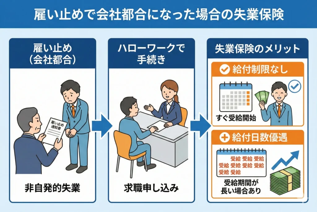 雇い止めが会社都合退職として認められた場合、失業保険(雇用保険の基本手当)の受給において、自己都合退職よりも大幅に有利な条件が適用されます。